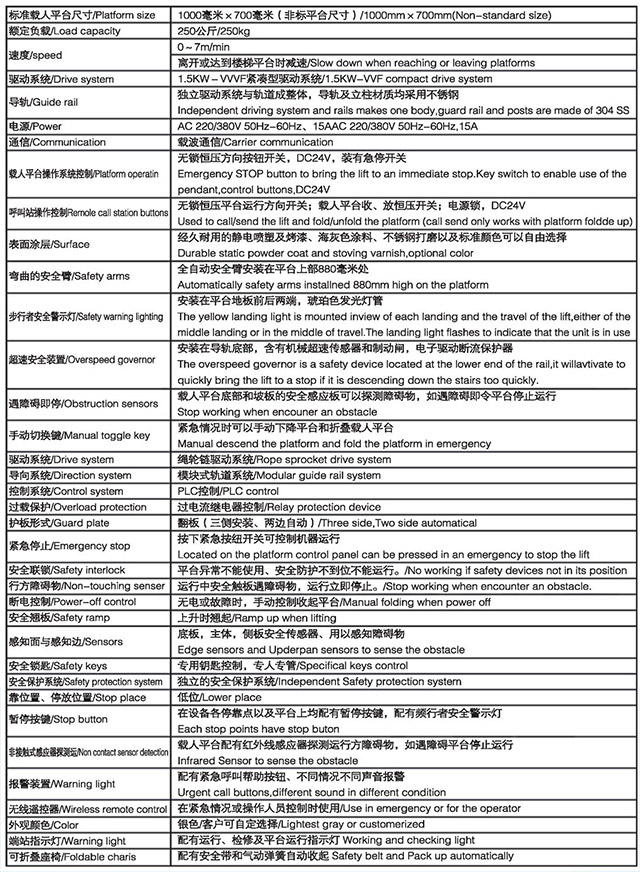 斜掛式無障礙升降平合按其運(yùn)行方向分曲線型和直線型二種。直線型多采用齒輪齒條式驅(qū)動(dòng)機(jī)構(gòu),沿樓梯做上升和下降,只能作直線運(yùn)行不能轉(zhuǎn)彎,傾斜角一般不大于35度,適用于樓層較低、中間沒有水平段的直線型樓梯。曲線型采用繩球鏈?zhǔn)絺鲃?dòng),不僅能做上升和下降,還能水平、轉(zhuǎn)彎和螺旋形運(yùn)行,適用范圍較為廣。該設(shè)備為乘坐輪椅的殘障人員上下樓梯提供了便利,現(xiàn)被廣乏地應(yīng)用在家居住宅和公共場所的樓梯上